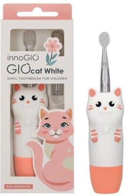 Szczoteczka soniczna Innogio Gio Cat w kształcie kotka zachęca dzieci do mycia zębów dzięki świecącej, kolorowej główce i delikatnemu działaniu sonicznemu. Oferuje 4 tryby pracy, 2-minutowy timer, wodoodporną konstrukcję i miękkie włosie bezpieczne dla dziąseł dzieci od 2 do 12 lat