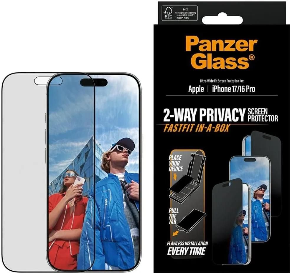 Szkło prywatyzujące PanzerGlass Ultra-Wide Fit Fastfit do iPhone'a Prywatność i bezpieczeństwo na najwyższym poziomie Hartowane szkło ochronne PanzerGlass® Ultra-Wide Fit to doskonałe rozwiązanie dla osób, które cenią prywatność i pełne bezpieczeństwo. Dzięki funkcji 2-Way Privacy treści na ekranie są widoczne tylko dla Ciebie – osoby patrzące z boku zobaczą jedynie ciemną taflę. To idealna ochrona w miejscach publicznych, gdzie poufność danych jest szczególnie ważna. Jednocześnie szkło zachowuje perfekcyjną przejrzystość i czułość ekranu, zapewniając pełen komfort użytkowania. Maksymalna ochrona i komfort użytkowania Wyjątkowa odporność na zarysowania, uderzenia i upadki, dzięki czemu Twój smartfon zyskuje najwyższy poziom zabezpieczenia dostępny na rynku. Powłoka oleofobowa chroni ekran przed smugami i odciskami palców, a krystalicznie czysty obraz pozostaje zawsze czytelny. Dzięki dołączonemu aplikatorowi instalacja jest szybka i bezproblemowa, a szkło można montować wielokrotnie bez utraty jakości kleju – to praktyczne i wygodne rozwiązanie na lata. Świadomy wybór dla przyszłości PanzerGlass® dba nie tylko o Twój telefon, ale również o planetę. Produkt został wykonany w 60% z materiałów pochodzących z recyklingu, a ekologiczne opakowanie z certyfikatem FSC™ minimalizuje wpływ na środowisko. Proces produkcji spełnia międzynarodowe normy jakości ISO 14064, ISO 9001 i ISO 14001, a certyfikaty REACH, RoHS i GRS potwierdzają bezpieczeństwo i transparentność całego łańcucha dostaw. Dodatkowo marka wspiera działania fundacji Perfect World Foundation, przyczyniając się do redukcji plastiku w oceanach i ochrony ekosystemów. Wybierając PanzerGlass®, inwestujesz w najlepszą ochronę swojego smartfona i realne wsparcie dla środowiska.
