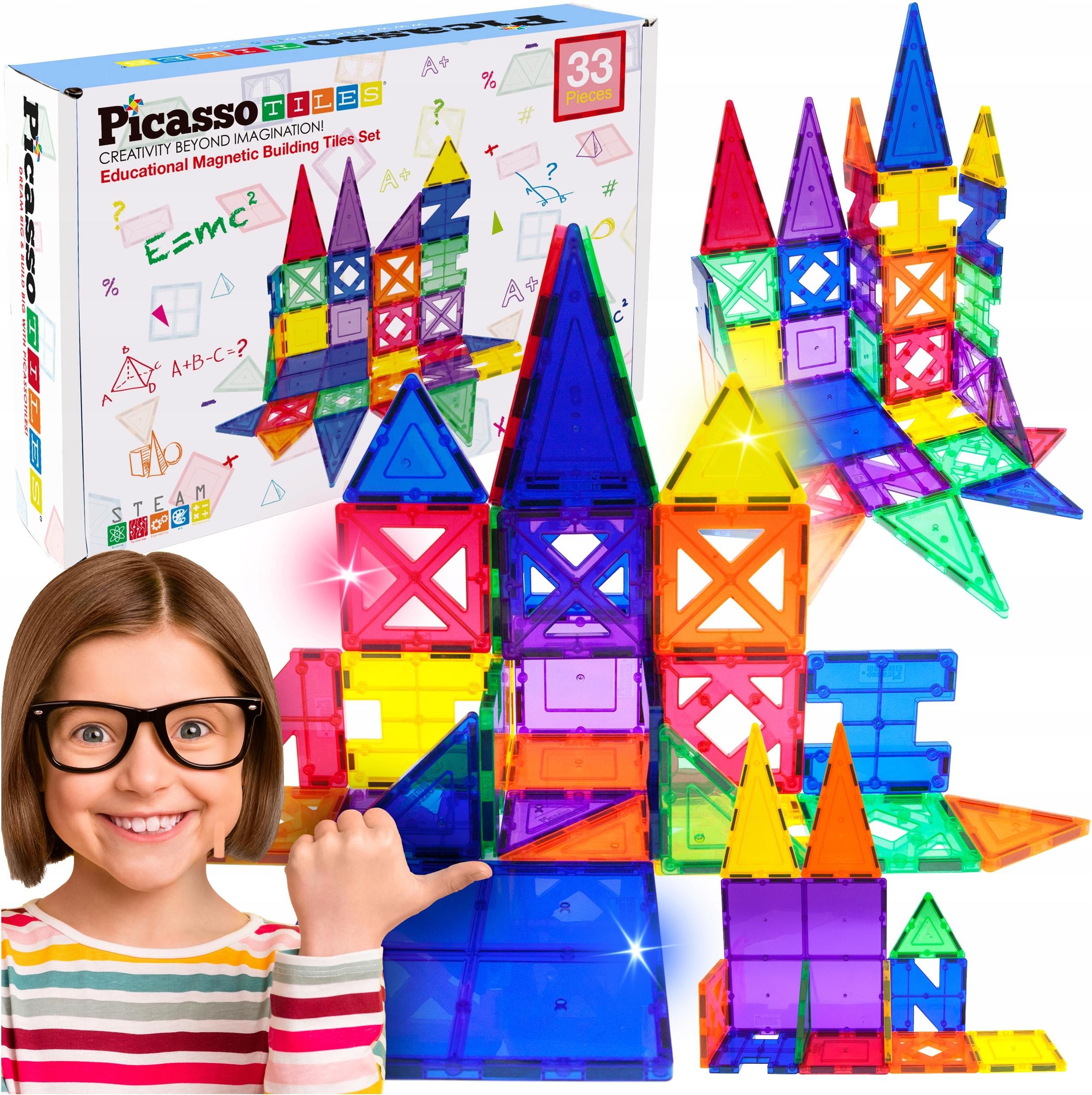 Klocki magnetyczne konstrukcyjne edukacyjne 33 el Picasso Tiles duże Uznana amerykańska marka ⭐️ Brak ostrych krawędzi ⭐️Zabudowane magnesy⭐️ Rozwój wyobraźni i myślenia ⭐️ Wytrzymałość 100 kg KLOCKI KONSTRUKCYJNE AMERYKAŃSKIEJ MARKI PICASSO TILES® 33 CZĘŚCI ZAMECZEK Duże, solidne kolorowe klocki …