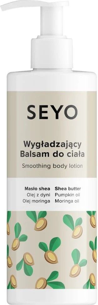 Seyo balsam do ciałaWygładzający balsam do ciała przeznaczony dla skóry suchej i odwodnionej. Dzięki składnikom pochodzenia naturalnego, takim jak masło shea oraz oleje z dyni i moringa, przywróci skórze jędrność i elastyczność.Po użyciu zapewni uczucie odżywionej i zregenerowanej skóry. Produkt szybko się wchłania, nie pozostawiając uczucia lepkości.Sposób użycia:Nałóż odpowiednią ilość balsamu na skórę, delikatnie wmasuj. Przeznaczony do codziennej pielęgnacji ciała.