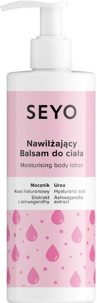 Seyo balsam do ciałaNawilżający balsam do ciała przywróci skórze zdrowy i zadbany wygląd. Zawarte w produkcie mocznik oraz kwas hialuronowy poprawią poziom nawilżenia, a ekstrakt z ashwagandhy dodatkowo zregeneruje skórę. Przy regularnym stosowaniu balsam odżywi, zmiękczy i wygładzi naskórek. Efekty stosowania widoczne już po 1 aplikacji.Sposób użycia:Nałóż odpowiednią ilość balsamu na skórę, delikatnie wmasuj. Przeznaczony do codziennej pielęgnacji ciała.