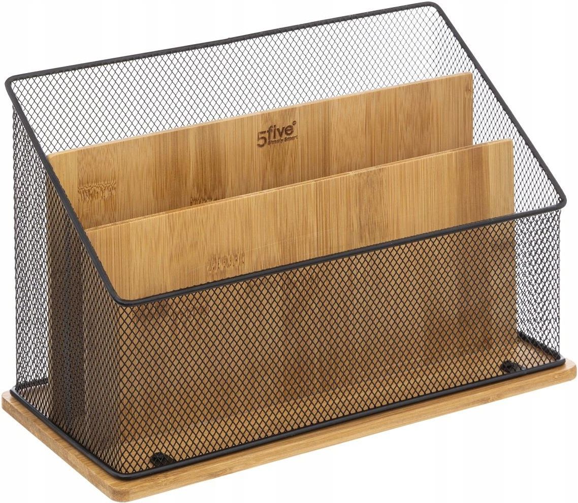 Organizer na biurko Havi - 5five simply smart Zorganizuj swoją przestrzeń biurową wraz z organizerem Havi od 5five simply smart. Drewniany pojemnik z bambusa i metalu jest częścią kolekcji Havi, która oferuje szereg organizatorów do utrzymania porządku w przestrzeni biurowej. Duży rozmiar organizera jest idealny do przechowywania szeregu przedmiotów, w tym papieru, artykułów piśmienniczych, książek i innych. Przedstawiamy organizer Havi - idealny dodatek do Twojego biura! Elegancki, minimalistyczny styl organizera na biurko gwarantuje, że będzie pasował do każdego wystroju biura. Oprócz estetycznego wyglądu, posiada drewnianą, bambusową podstawę i metalowe boki, które zapewniają mu wytrzymałość i trwałość. Jednak najbardziej imponującą częścią tego organizera są trzy przegródki, które pomogą Ci oddzielić od siebie dokumenty. Poważnie, organizacja dokumentów, poczty czy długopisów nigdy nie była prostsza! Nie zadowalaj się niczym mniej niż doskonałym, jeśli chodzi o Twoje biurowe niezbędniki - wybierz organizer biurkowy Havi już dziś. O tym warto pamiętać! Uwolnij swoje biurko od bałaganu. Wyposażony w trzy przegródki. Łatwe przechowywanie dokumentów i innych przedmiotów biurowych. Trwała konstrukcja z bambusa i metalu. Dostępne są także inne organizery z tej samej kolekcji.