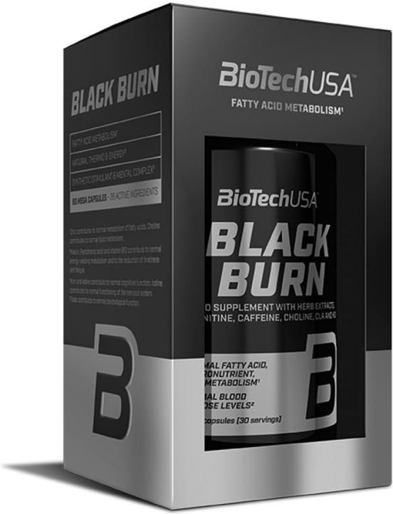 BioTech USA Black Burn to spalacz tłuszczu zawierający aż25 składników aktywnych, który dostarczając do naszej diety m.in.kofeinę, ekstrakty ziołowe, L-karnitynę, aminokwasy, witaminy czyskładniki mineralne, polecany jest wszystkim osobom aktywnymfizycznie dążącym do zmniejszenia poziomu zalegającej tkankitłuszczowej. Działanie BioTech USA Black Burn Wspiera uwidocznienie zakrytych tłuszczem mięśni; Przyczynia się do szybszej optymalizacji masy ciała; Optymalnie pobudza i dodaje energii do działania; Wpływa na przyspieszenie efektów redukcyjnych ćwiczeń orazdiety; Korzystnie wpływa na metabolizm; Dba o efektywniejszy proces odchudzania. Zalety BioTech USA Black Burn Szukasz sposobu jak skutecznie pozbyć się nadmiaru tkankitłuszczowej? Reduktor tłuszczu BioTech USA Black Burn topołączenie kilkunastu sprawdzonych składników aktywnych, którewspiera w szybszym wysmukleniu sylwetki, a co za tym idziezoptymalizowaniu masy ciała. Optymalnie pobudzając, wyzwala dawkę energii do działania, atakże dba o zwiększoną koncentrację podczas ćwiczeń. To idealneuzupełnienie redukcyjnej diety oraz treningowegoplanu. Dawkowanie BioTech USA Black Burn Spożywaj 3 razy dziennie po 1 kapsułce. Spożywaj 30 minut przed posiłkiem popijając szklanką wody(300-500 ml).