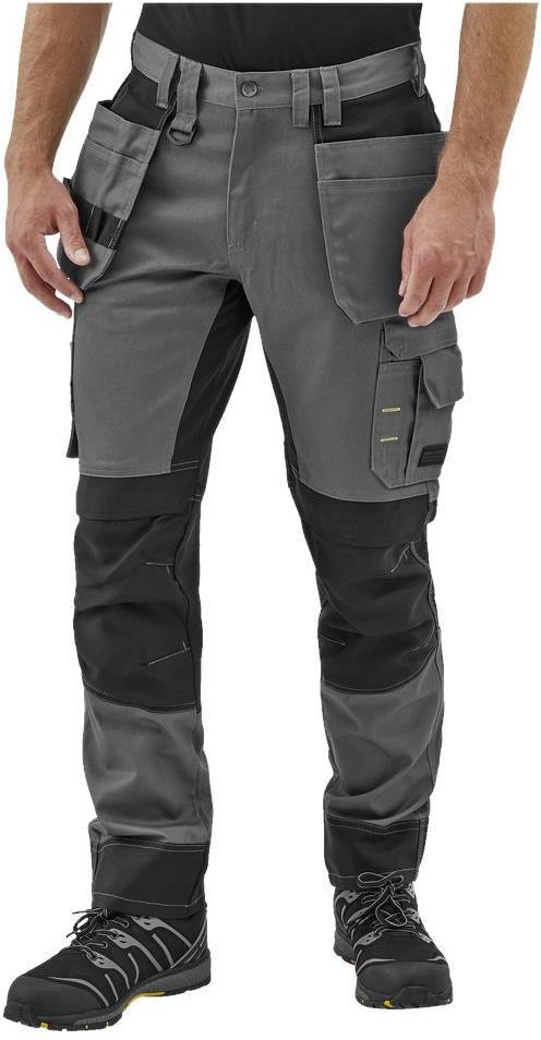 Spodnie robocze z certyfikatem OEKO-TEX, nylonowym wzmocnieniem, wstawkami ze stretchu i wieloma kieszeniami oraz uchwytami.