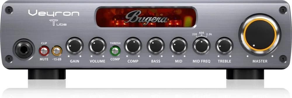 Bugera BV1001T - kompaktowy basowy wzmacniacz lampowy w klasie D. Kompresor oraz technologia DYNAMIZER Optical. Moc: 2000 W Lampy: 3 x 12AX7 Zapewniająca niesamowitą moc i jakość brzmienia technologia wzmocnienia w klasie D Lampowy przedwzmacniacz zapewniający harmoniczne, bogate i żywe lampowe brzmienie Muzykalny, optyczny kompresor Technologia DYNAMIZER zarządzająca mocą w sposób uwydatniający każdy muzyczny niuans Korekcja brzmienia w zakresie Bass/Mid/Treble Przełącznik pasma MF pomocny w ustawieniu trzech klasycznych brzmień Pasywna regulacja EQ Baxandall w paśmie Bass i High oraz aktywna-lampowa regulacja EQ w paśmie Mid Symetryczne wyjście DI z regulacją EQ pre/post umożliwiające bezpośrednie podłączenia do miksera Pętla FX dla zewnętrznych efektów Wyjście dla tunera z możliwością podłączenia monitora Wejście Aux pozwalające odtwarzać ulubioną muzykę Wyjście słuchawkowe o dużej mocy pomocne w trakcie ćwiczeń 2 równoległe złącza głośnikowe (kompatybilny z Neutrik Speakon) Podwójne wejście dla pedału FS112B Mute i FX Loop (brak w zestawie) Aktywny system chłodzenia o zmiennej prędkości obrotowej wentylatora, zabezpieczenia przed składową stałą, termiczne zabezpieczenie przeciążeniowe Gwarancja: 24 miesiące