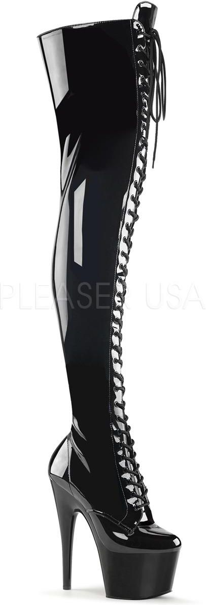 Wiązane obcasy erotyczne Pleaser Adore-3023 Prezentujemy dostępny w naszej ofercie symbol zmysłowości, seksapilu i drapieżności, buty, które już od pierwszego spojrzenia imponują mocnym charakterem, ale i doskonałą jakością wykonania. Model ten to buty amerykańskiej marki Pleaser, Adore-3023. Obuwie nie bez powodu cieszy się ogromną popularnością wśród naszych klientek, nawet tych szczególnie wymagających. Dowiedz się więcej o tym niebanalnym modelu i zakochaj się w jego wdziękach. Poznaj obcasy Pleaser Adore-3023 Model Adore-3023 to buty, które w sposób zjawiskowy prezentują się na nogach, co więcej sprawiają, że i same nogi wyglądają wspaniale. W butach Adore-3023 poczujesz się seksowna i zmysłowa, wniesiesz powiew drapieżnej świeżości do swojej sypialni. Długa, sięgająca uda cholewka z wiązaniem na froncie, wzniesiona została na imponującej wysokości niemal 18-centymetrowym obcasie oraz kilkucentymetrowej platformie. Duet ten skutecznie wydłuża i wysmukla nogi, jednocześnie pozwalając na zachowanie stuprocentowej pewności i wygody każdego kolejnego kroku. Model dostępny jest w naszej ofercie w rozmiarach od 35 do 44.