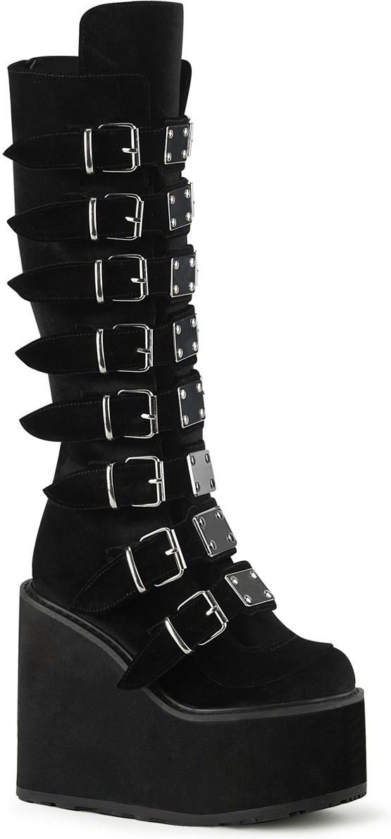 Buty SWING-815 to niezwykle efektowny model obuwia alternatywnego. Spodoba się każdemu, kto chce wyróżnić się z tłumu. Buty zostały wyprodukowane z wysokiej klasy materiałów syntetycznych. Dzięki temu buty mogą nosić także osoby, które zrezygnowały z noszenia wyrobów ze skór naturalnych. Wysokie cholewki świetnie stabilizują kostkę. Zapięcia na klamry pozwala na świetne dopasowanie obuwia do anatomicznego kształtu stopy. Usztywniany zapiętek i podeszwa z bieżnikiem są gwarancją stabilności i wygodny w czasie chodzenia. 14 centymetrowe koturny optycznie wysmuklają sylwetkę, nadając jej lekkości. Buty SWING-815 będą pasować do wielu szalonych stylizacji. Obuwie jest niezwykle widowiskowe, jednocześnie prezentuje się bardzo elegancko. Buty sprawią, że każdy kto je nosi może poczuć się wyjątkowo. Bez względu na okoliczności. Wystarczy odrobina fantazji… Buty SWING-815 dostępne są w szerokiej gamie rozmiarów, od 36 do 42.