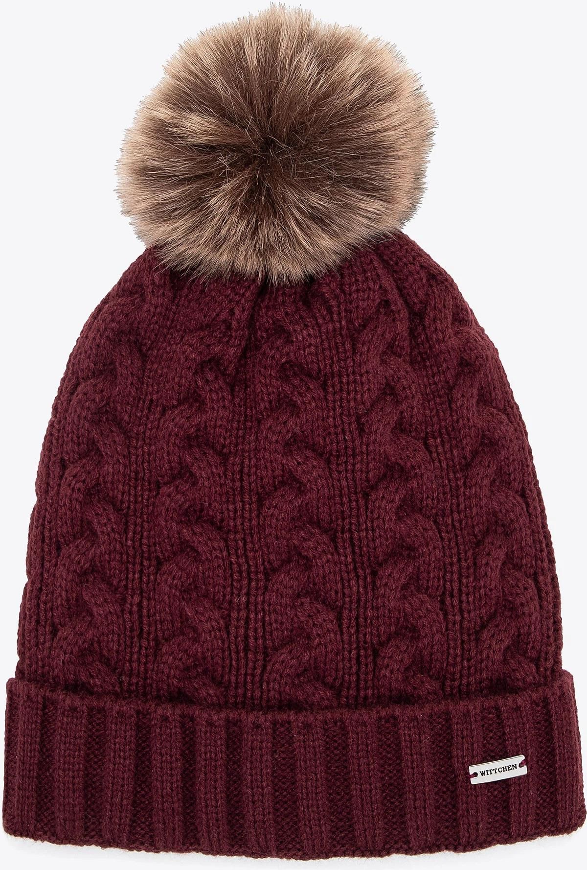 Opinie Czapka damska z warkoczowym splotem i pomponem bordowa Nasielsk