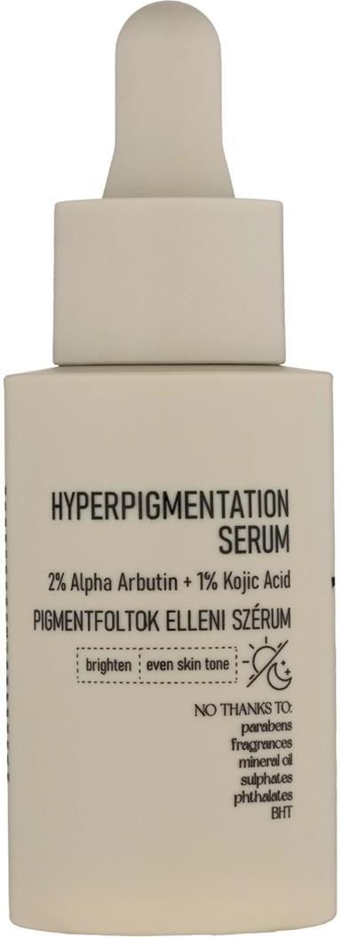 Nerds - Hyperpigmentation Serum Serum na Przebarwienia z Alfa-Arbutyną i Kwasem Kojowym Pojemność: 30 ml Specjalistyczne serum stworzone z myślą o skórze z nierównym kolorytem i przebarwieniami. Połączenie 2% alfa-arbutyny i 1% kwasu kojowego działa na poziomie melanogenezy, czyli procesu produkcji melaniny – naturalnego barwnika skóry. Dzięki temu systematyczne stosowanie serum pomaga rozjaśnić przebarwienia, wyrównać koloryt i nadać cerze jaśniejszy, bardziej jednolity wygląd. Formuła została wzbogacona o olej ze słodkich migdałów, który odżywia, wygładza i przynosi komfort skórze. Delikatnie mleczna, lekka konsystencja szybko się wchłania, nie obciążając cery. Produkt jest bezzapachowy, niekomedogenny i zamknięty w higienicznym opakowaniu z pipetą, co ułatwia precyzyjną aplikację. Sposób użycia: Serum stosuj na oczyszczoną skórę, po tonizacji rano i/lub wieczorem. Nanieś 4-5 kropli na twarz, omijając okolice ust i oczu i wklep dla lepszego wchłonięcia.