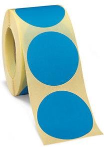 Kolor niebieski Pantone 0088CERE, proces blue Umożliwiają łatwą zmianę kolorowego oznaczenia. Bardzo dobrze przyklejają się do wszystkich powierzchni, a po odklejeniu nie pozostawiają śladów. Praktyczne, na rolce, umożliwiają umieszczenie napisu, odpowiednie również do wydruku termotransferowego. Sprzedawane na rolki. Ilość etykiet na rolce: 500 szt. Ø gilzy 40 mm.. Cena za rolkę.