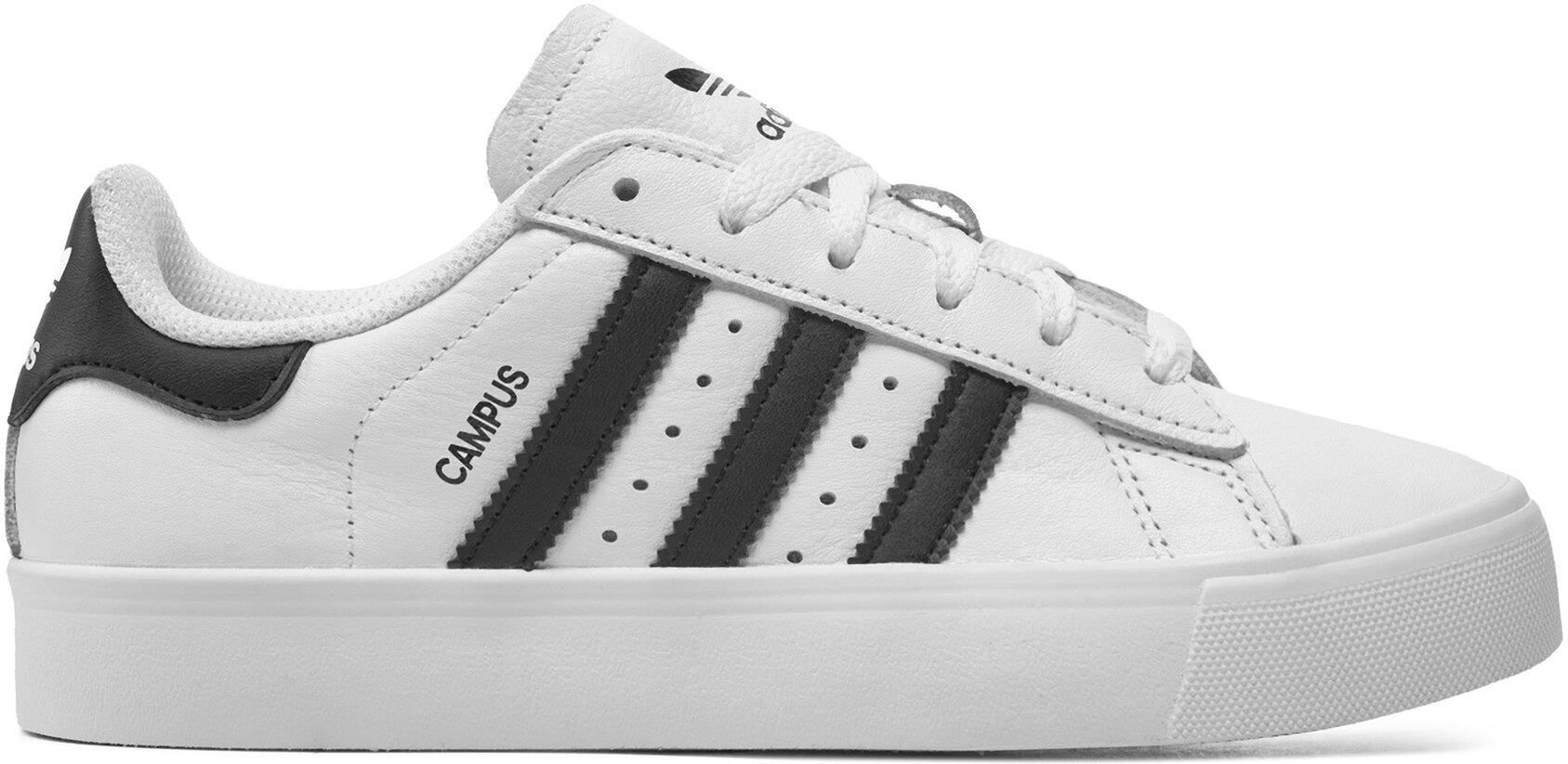 adidas Campus Vulc JI1918 White – legenda streetwearu Sneakersy adidas Campus Vulc JI1918 White to prawdziwa ikona wśród obuwia sportowego. Zostały stworzone z myślą o grze w koszykówkę, jednak szybko przeniosły się z parkietu na ulice miast. Obecnie buty te są niezbędnikiem w szafach trendsetterów, którzy cenią je za komfort i design. Wyróżniają się nieco masywniejszą sylwetką. Będą idealnym uzupełnieniem setów w stylu mody ulicznej, ale wkomponujesz je również do outfitów w duchu high fashion. miękka, zamszowa cholewka w kolorze białym szerokie i solidne sznurówki ząbkowane paski w stylu vintage elementy z logo na języku, zapiętku oraz bokach cholewkili>podwyższona podeszwa wykończona gumą