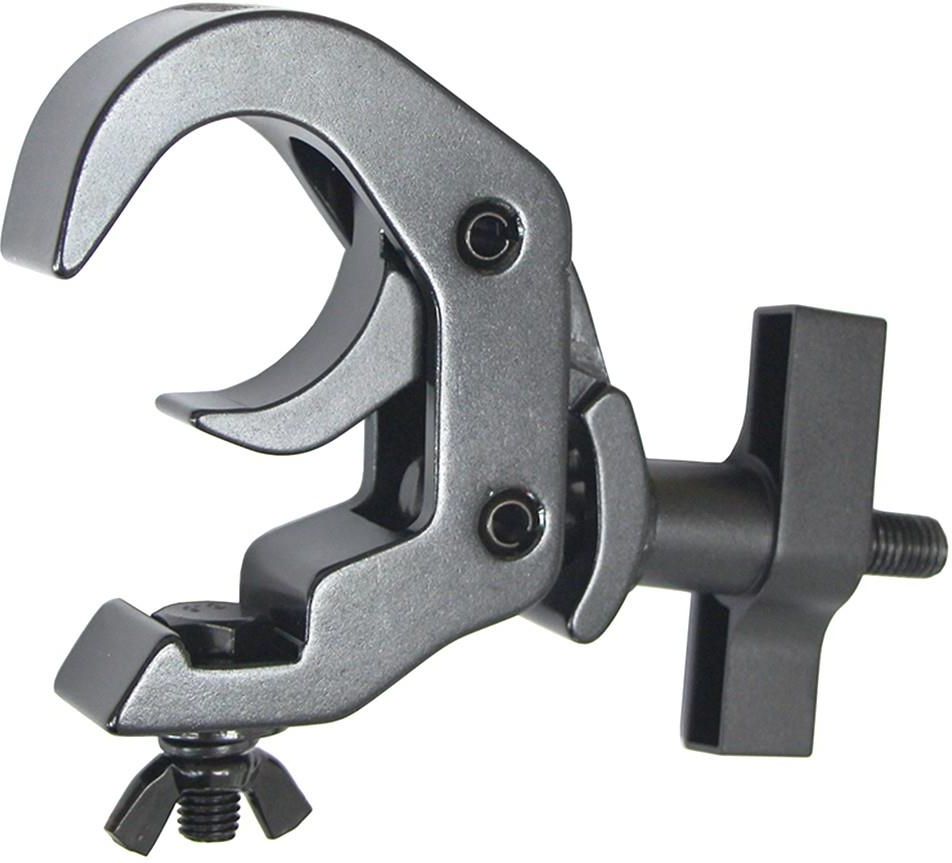 STAND4me HAK UCHWYT do ŚWIATEŁ Udźwig do 250 KG Średnica robocza 48-51 mm Haki STAND4ME - bezpieczny i szybki montaż Twojego oświetlenia! Profesjonalny, bardzo wygodny w użytkowaniu, czarny ✔️ uchwyt szybkomontażowy typu Omega marki Stand4Me. Hak umożliwia rzymocowanie reflektorów, efektów świetlnych oraz niektórych urządzeń scenotechnicznych do różnego rodzaju ramp oraz konstrukcji typu bi, tri i quadro system, posiadających ✔️ rury o średnicy 48 – 51 mm. Obejma przykręcana jest bezpośrednio do urządzenia, umożliwiając następnie błyskawiczny ✔️ montaż sprzętu na kratownicy. Dzięki zastosowaniu wygodnych w użyciu śrub motylkowych i solidnej, metalowej konstrukcji, hak wytrzymuje ✔️ obciążenie nawet do 250 kg! To doceniany przez wielu techników estradowych, wysokiej jakości aliskaf w możliwie najniższej cenie. Specyfikacja techniczna Średnica robocza: 48 – 51 mm Maks. udźwig: 250 kg Materiał: metal Kolor: czarny Certyfikat: TÜV