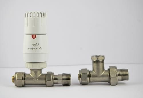 Termostatyczny zestaw zaworów grzejnikowych ze złączkami na rurę PEX 16. Zestaw zawiera: - głowica termostatyczna Mera Term Plus - zawór termostatyczny prosty 1/2" - zawór powrotny prosty 1/2" Zawory są przystosowane do montażu instalacji wykjonanej z rury PEX 16x2. Produkt polski wyprodukowany przez firmę Vario Term Sp. z o.o. Gwarancja 3 lata.