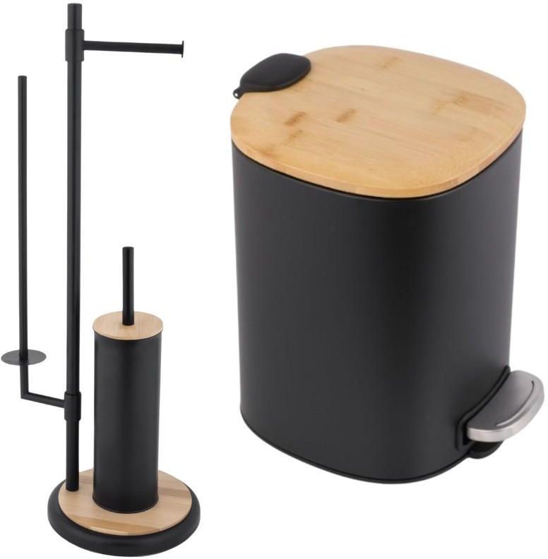 Zestaw do Łazienki z Bambusem: Kosz na śmieci i Stojak na papier toaletowy + szczotka WC - Yoka Nasielsk