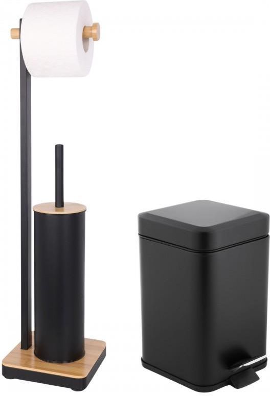 Zestaw Łazienkowy Czarny Z Bambusem Kosz Na Śmieci 3L Soft Close I Stojak Na Papier Ze Szczotką Wc Yoka Home Nasielsk