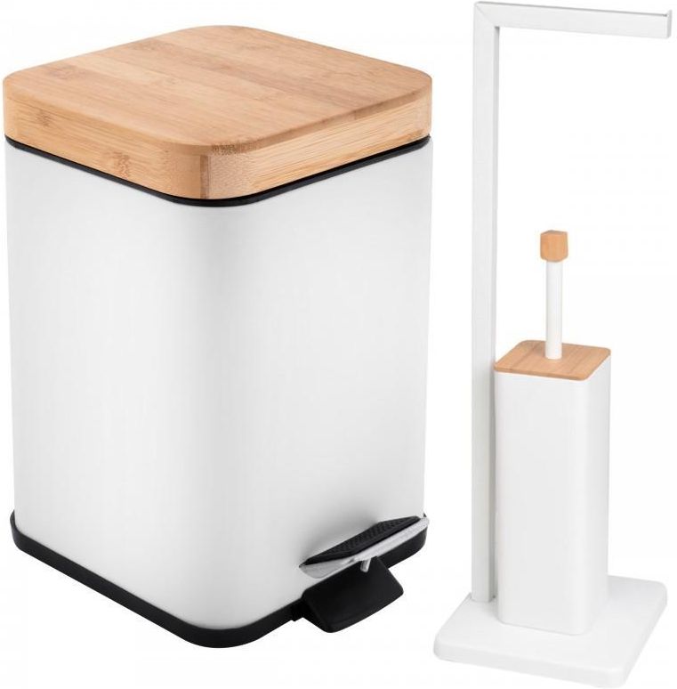 Zestaw Łazienkowy Kosz 3L kwadratowy + Szczotka WC ze Stojakiem na Papier Biały i Bambus Nasielsk
