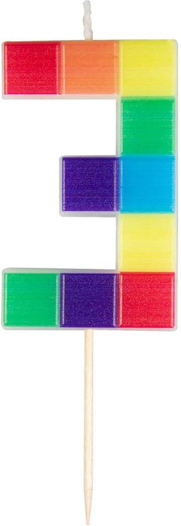 Świeczka urodzinowa 3 klocki 7cm ARPEX ✅ ✔️ Świeczka urodzinowa w kształcie cyfry 0 z motywem kolorowych klocków. Idealna jako dopełnienie dekoracji tortu. Posiada element umożliwiający stabilne wbicie świeczki w ciasto. Wysokość świeczki to 7 cm. ➡️ Format: 60x128 mm EAN: 5902934221511 …