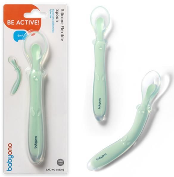 Elastyczna łyżeczka z miękkiego silikonu idealnie nadaje się do nauki jedzenia.