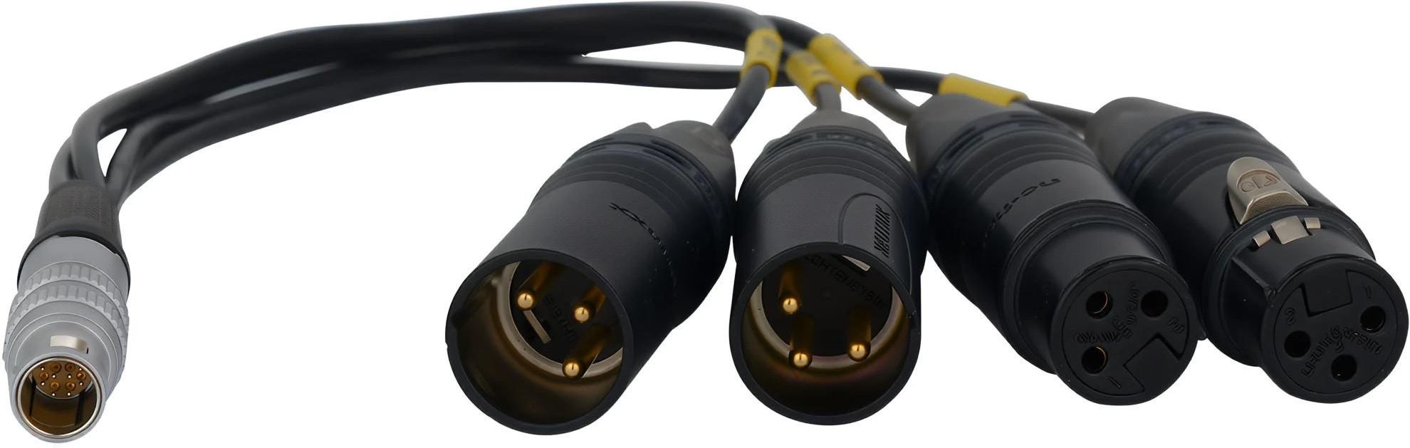 Bolin BLA-10 LEMO Breakout Cable | Kabel audio 10-pin LEMO do 4x XLR I/O (2x Męskie, 2x Żeńskie) Cechy Numer modelu: BLA-10 10-pinowe złącze typu LEMO do kabla rozgałęźnego XLR dla przesyłania zbalansowanego sygnału audio stereo Wejście audio L/R, wyjście L/R Długość: 350 mm/10,5 cala Do użytku z kamerami PTZ serii Bolin R9 i EX Ultra Nie wchodzi w skład zestawu z kamerą, sprzedawany oddzielnie Part Number: L7030042