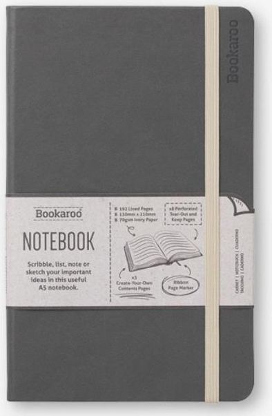 Notatnik Bookaroo Journal A5 Szary - IF To nowoczesny notatnik z elegancką, sztywną okładką z liniami, który skrywa w swoim wnętrzu 192 strony. Wyposażony jest w aż 8 stron perforowanych, które - gdy zajdzie taka potrzeba - można łatwo wyrwać. Wyprodukowany zostaje na papierze o doskonałej jakości, …