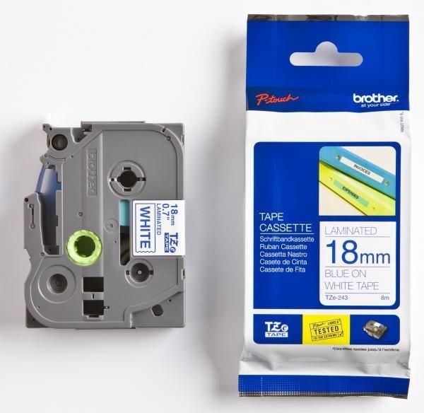 Brother TZe-243 - niebieski nadruk na białym tle, 18mm szerokości Laminowana taśma TZe-243 firmy Brother, kompatybilna z drukarkami P-touch. Wszechstronna i czytelna, dzięki niebieskiemu nadrukowi na białym tle. Stanowi przydatne narządzenie do znakowania zarówno w domu, w biurze, jak i w innych miejscach.  Główne cechy 18mm szerokości, 8m długości Wysokiej jakości oryginalna taśma firmy Brother Zapewnia wyraźne i trwałe rezultaty Oryginalna taśma TZe-243 firmy Brother. Gwarantuje wyraźne, trwałe i czytelne etykiety. Sprawdzi się zarówno w domu, biurze jak i w innym miejscu pracy. Laminowana taśma TZe-243 z niebieskim nadrukiem na białym tle. Etykiety mają wszechstronne zastosowanie - od identyfikacji akt osobowych i szafek, przez pamięć USB aż po inne aktywa.   Samoprzylepne etykiety są wytrzymałe temperaturowo, odporne na chemikalia, wodę, ścieranie. Mogą być zatem stosowane zarówno wewnątrz jak i na zewnątrz.   Taśmy TZe są łatwe i szybkie w montażu. Występują w wielu kolorach i rozmiarach, a także materiałach. Taśmy TZe z pewnością sprostają Twoim oczekiwaniom w zakresie etykiet.