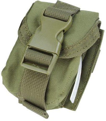 Ładownica Condor Single Frag Grenade Pouch - Zielony OD (3509) SP Wytrzymała ładownica na granaty wykonana z Cordury 1000D. Kieszenie zamykane są na klamrę z regulacją długości troka ściągającego. Ładownica mocowana jest do kamizelki dwoma pionowym paskami, zgodnymi ze standardem MOLLE/PALS. Dane …