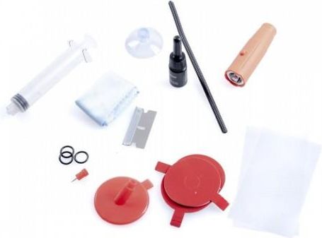 EINPARTS Zestaw do naprawy szyb Do usuwania odprysków, pęknięć Zestaw do samodzielnej naprawy / renowacji szyb umożliwia usunięcie odprysków, głębokich zarysowań jak i również pęknięć. Jest to pełen zestaw, nie potrzebujesz dodatkowych narzędzi. Uwaga! *Zdjęcia są autorską własnością firmy W zestawie ✅pinezka ✅ściereczka z mikrofibry ✅uszczelka samoprzylepna x3 ✅uszczelka typu O-ring x3 ✅podstawa do wprowadzania żywicy naprawczej ✅żyletka ✅żywica naprawcza ✅strzykawka ✅folia utwardzająca x3 ✅lampka UV (Naprawę można wykonać bez potrzeby wystawiania pojazdu na słońce) ✅wlepka MRC Zestaw można także stosować do naprawy uszkodzeń szklanych reflektorów. Zastosowanie odpryski rysy płytkie zarysowania głębokie zarysowania pęknięcia uszkodzenia mechaniczne Łatwość w użyciu Za pomocą czerwonej pinezki usuń odłamki szkła i wyczyść pozostałości. Użyj ściereczki do czyszczenia uszkodzonego obszaru. Oderwij papier ochronny i przyklej uszczelkę samoprzylepną do przedniej szyby, wyrównując otwór z centralnym miejscem uszkodzenia. Oderwij przednią część samoprzylepnej uszczelki i umieść uszczelkę typu o-ring w środku otworu. Przyklej podstawę do uszczelki samoprzylepnej, upewniając się, że otwór podstawy jest skierowany do góry. Kciukami mocno dociskaj wzdłuż krawędzi podstawy, aby zapewnić szczelne łączenie z uszczelką. Weź żywicę naprawczą i odetnij końcówkę butelki. Delikatnie ściśnij podstawę butelki około trzy razy. Powinny być około 2 lub 3 krople żywicy (potrzebna ilość może się różnić w zależności od wielkości uszkodzenia). Użyj lustra, aby sprawdzić czy wprowadzono wystarczającą ilość żywicy. Przykręć strzykawkę do otworu podstawy, pociągnij tłok do góry i zablokuj w drugim zapięciu. Trzymaj strzykawkę w tej pozycji przez 10-15 minut, pozwali to usunąć pęcherzyki powietrza. Odkręć strzykawkę z podstawy i ponownie ją przykręć. Wepchnij tłok z powrotem do strzykawki i zablokuj go za pomocą pierwszego zapięcia. Pozostaw strzykawkę w tej pozycji na 10-15 minut. Odkręć strzykawkę i użyj żyletki, aby zdjąć podstawę i uszczelkę samoprzylepną z szyby. Po zdjęciu podstawy, usuń delikatnie żyletką pozostałości żywicy. Zaaplikuj od 1 do 2 kropli żywicy na środek uszkodzonego obszaru. Połóż szybko folię utwardzającą na uszkodzonym obszarze i użyj żyletki, aby wygładzić folię, upewniając się, że żywica jest równomiernie rozprowadzona pod folią. Jeśli jest to możliwe, możesz unieruchomić folię taśmą samoprzylepną (nie jest zawarta w zestawie). Żywica utwardzi się naturalnie w ciągu 15-20 minut w bezpośrednim świetle słonecznym. Po utwardzeniu żywicy usuń folię utwardzającą. Trzymając żyletkę pod kątem 45 stopni, delikatnie zeskrob nadmiar żywicy.