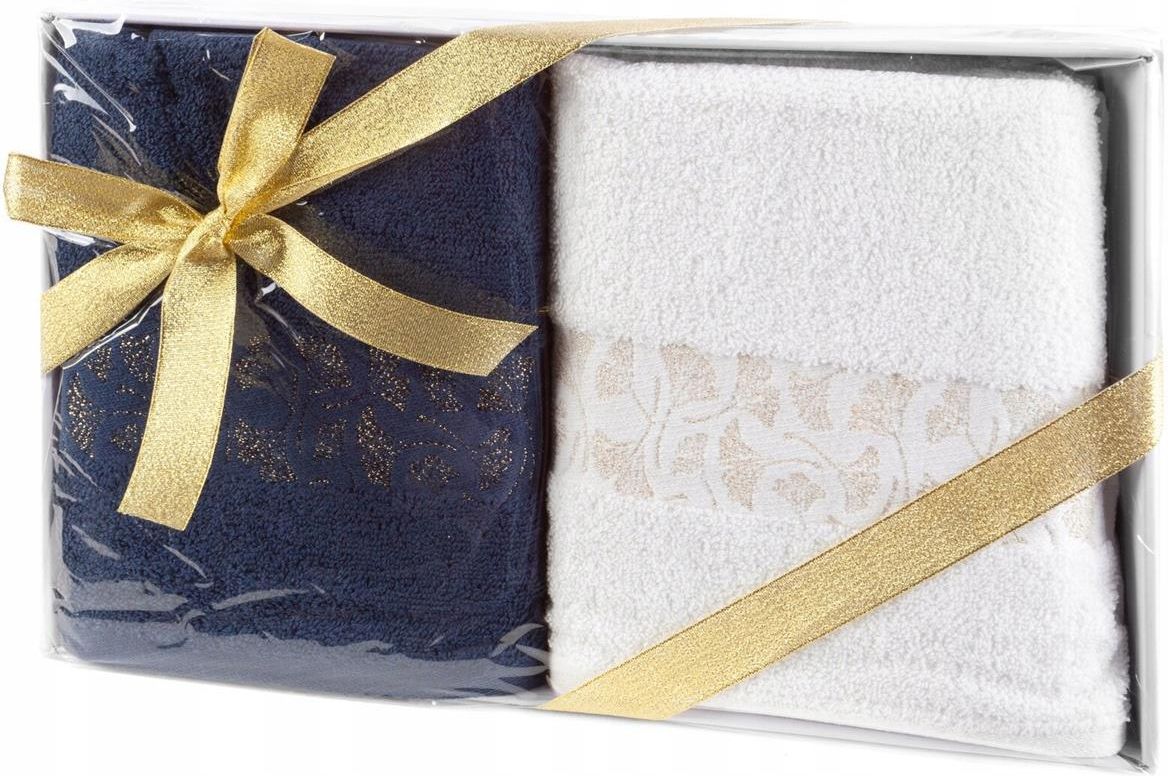 Eurofirany Komplet Ręczników W Pudełku 50X90 Biały Granatowy 450G/M2 Nekla