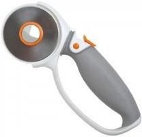 FISKARS 1004753 - nóż krążkowy z tytanowym ostrzem o średnicy 60 mm Nóż krążkowy z tytanowym ostrzem (średnica 60 mm) to rewelacyjne narzędzie dla każdego, kto często kroi grube materiały albo wiele warstw materiałów jednocześnie. Tytanowe, precyzyjne ostrze jest trwalsze i bardziej wytrzymałe niż standardowe. Nóż pozwala uzyskać gładkie cięcie i bez trudu rozcina tkaniny, dzianiny oraz skórę. Jest doskonałym narzędziem dla fanów patchworku czy modelarstwa. Duża, ergonomiczna rączka Softgrip™ świetnie leży w dłoni, a nóż jest lekki i poręczny. Wyposażono go w blokadę, która ogranicza ryzyko skaleczenia się, a ponadto chroni ostrze przed uszkodzeniem w czasie przechowywania. Nóż został zaprojektowany dla osób zarówno praworęcznych, jak i leworęcznych, a samo przełożenie ostrza jest bardzo łatwe. Do stosowania noży krążkowych niezbędna jest specjalistyczna mata, która zabezpiecza powierzchnię blatu i ostrze przed uszkodzeniem. Kliknij tutaj i poznaj sprawdzone przez nas maty firmy Fiskars oraz innych producentów.Samo ostrze można wymienić z łatwością. Polecamy stosowanie ostrzy Fiskars 1004738.