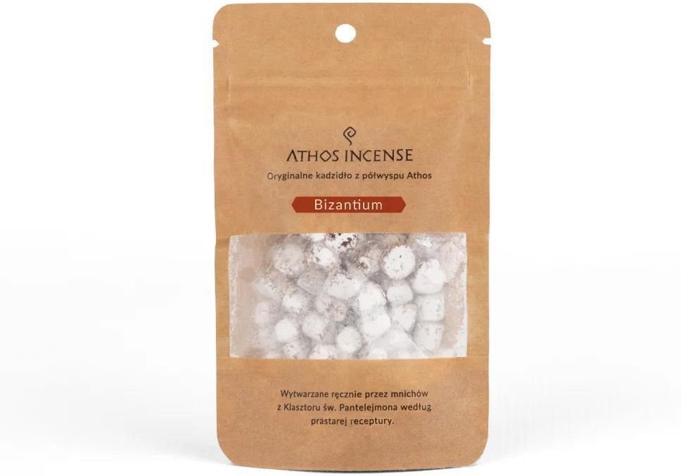 Oryginalne kadzidło z półwyspu Athos wytwarzane ręcznie przez mnichów z Klasztoru św. Pantelejmona według prastarej receptury. Bizantium – bardzo wyrazisty aromat, dawniej kojarzony z siłą i potęgą. Wzmacnia duchowo, poprawia nastój, nadaje pewności siebie, łagodzi stany lękowe i depresyjne. Idealny podczas spo tkań i przy jęć. Sposób użytkowania: - kominek do aromatoterapii: W miseczce kominka należy umieścić kilka kulek kadzidła, natomiast w jego dolnej części wstawić zapalony podgrzewacz, w postaci małej świeczki typu tealight. Jej zadaniem jest roztopienie znajdującego się powyżej kadzidła, dzięki czemu do otoczenia uwalniany jest zapach. Taki sposób użytkowania jest bardzo wydajny i zapewnia przyjemne doznania przez wiele dni. Można go stosować na co dzień, podczas spotkań towarzyskich, dla zapewnienia relaksu. - węgielek trybularzowy: Węgielek należy rozpalić i umieścić w kadzielnicy. Po kilku minutach, kiedy węgielek rozpali się, na popiół kładzie się kilka kulek kadzidła. W tym przypadku kadzidło jest nie tylko podgrzewane, ale i spalane, dlatego pojawia się charakterystyczny dla procesu palenia, aromatyczny dym. Zbyt duża ilość kadzidła może doprowadzić do zagaszenia węgielka. Taki sposób użytkowania jest idealny podczas obrzędów liturgicznych, modlitwy i odpoczynku. Waga:40g W ofercie dostępne także zapachy Orchidea oraz Mirra w dwóch wielkościch wagowych oraz kominki do aromatoterapii.