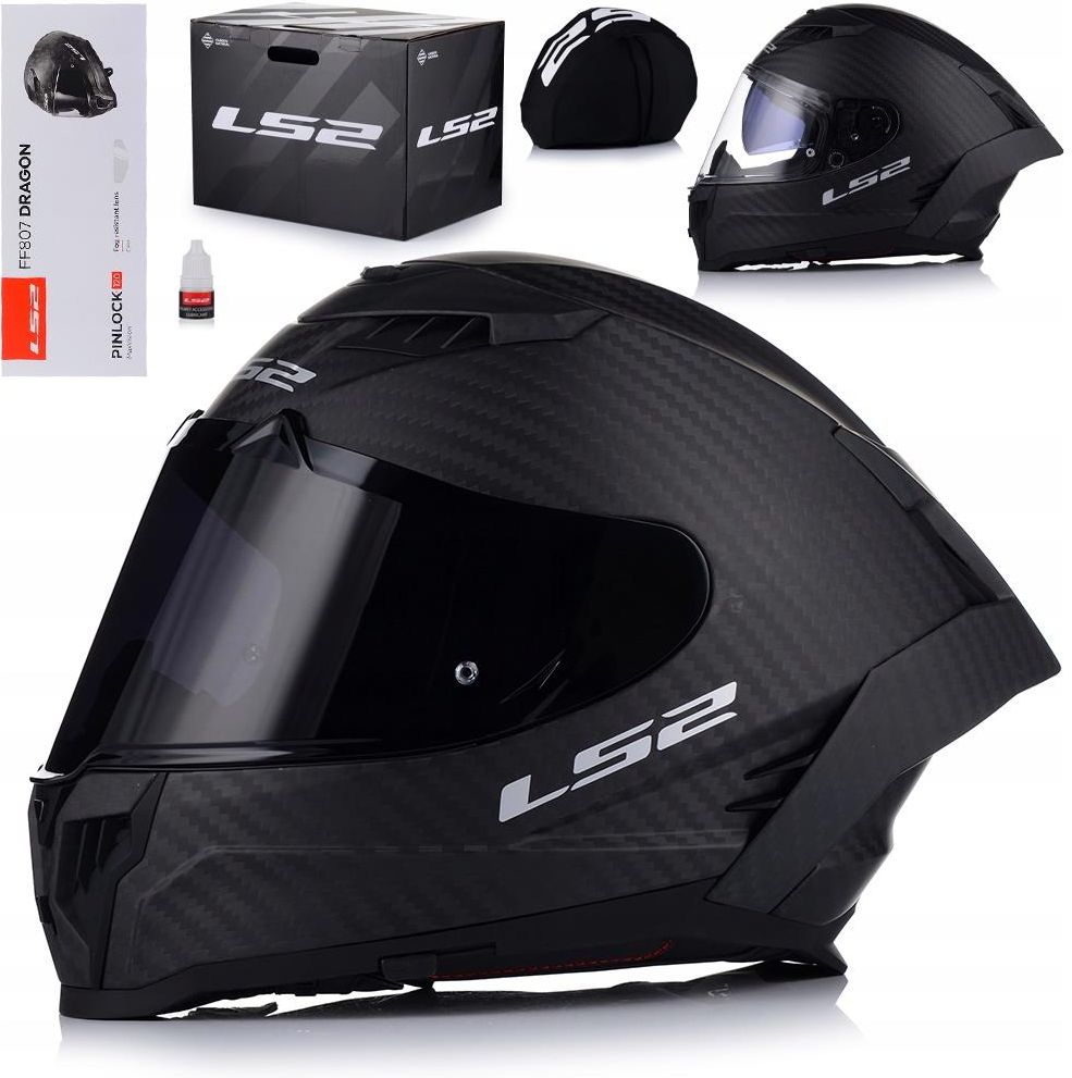 KASK MOTOCYKLOWY LS2 FF807 DRAGON CARBON Rozmiar: XL obwód głowy: 61-62cm Opis techniczny Materiał: Węgiel 6K Waga: 1280 g (±50 g) Rozmiary (3 skorupy): 2XS-S / M-L / XL-3XL Homologacja ECE 22.06 – spełnia europejskie normy bezpieczeństwa. System awaryjnego zwolnienia – umożliwia łatwe zdjęcie …