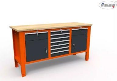 Meble warsztatowe Techno Light firmy Malow zostały stworzone z myślą zarówno o amatorach jak i profesjonalistach. Stanowią idealne wyposażenie warsztatów majsterkowicza, samochodowych, ślusarskich, stolarskich i innych, gdzie wytrzymałość i funkcjonalność jest stawiana na 1 miejscu. Innowacyjny design oraz stabilna konstrukcja, sprawiają, że jest to zakup na lata. Meble te są niezwykle odporne na różnego rodzaju wstrząsy i uderzenia. Dzięki modułowej budowie możliwa jest dowolna konfiguracja według własnych potrzeb, daje to tym samym kilkaset możliwych kombinacji w zagospodarowaniu stanowisk narzędziowych. Meble te pozwalają na zachowanie porządku w narzędziach i przyborach warsztatowych oraz zapewniają ich bezpieczeństwo. Wszystkie stoły Techno Light można łączyć w ciągi, poprzez skręcenie ze sobą stołu z dostawką. Ponadto każdy stół można nadbudować za pomocą stelaża narzędziowego z perforowanymi panelami ściennymi oraz szafki wiszącej. Stół warsztatowy ST17/04 to wersja trzymodułowa, która składa się ze stelaża z blatem + szafki W + P + S. Został wykonany z blachy stalowej o grubości 1,5 mm i posiada blat ze sklejki z drzewa liściastego o grubości 30 mm, z nawierconymi otworami do przykręcenia. Dla jeszcze lepszego zabezpieczenia blat został dwukrotnie pomalowany bezbarwnym lakierem. Istnieje możliwość zamontowania blatu z blachą ocynkowaną o grubości 1,5 mm. Dodatkowo każdy blat może być wykończony rantami malowanymi proszkowo o grubości 1,5 mm. Nogi stołu wyposażone zostały w stopki regulujące wysokość w zakresie 50 mm. Pozwala to na ustawienie stołu nawet na bardzo nierównej powierzchni. Stół warsztatowy ST17/04 po lewej i po prawej stronie posiada po jednej szufladzie o wysokości 150 mm oraz po jednej szafce, z półką w środku, która posiada oddzielny zamek z ryglem w 1 punkcie. Natomiast na środku stołu znajduje się siedem szuflad: sześć o wysokości 75 mm oraz jedną o wysokości 100 mm.. Poprowadzone zostały na prowadnicach o nośności 65 kg. Mają one aluminiowe uchwyty z miejscem na kartę opisową oraz zabezpieczone zostały oddzielnymi zamkami cylindrycznymi z ryglowaniem w 1 punkcie. Ponadto stół wyposażony jest w system zamknięcia centralnego RONIS, który uniemożliwia wysunięcie się więcej niż 1 szuflady.Stół pomalowany jest w technologii proszkowej, która zwiększa odporność na korozję oraz chroni go przed odpryskami farby. Maksymalne obciążenie stołu, przy równomiernym rozmieszczeniu wynosi 600 kg. W każdym stole istnieje możliwość zamontowania systemu półek, wstawek oraz szafek od A-Z, dzięki czemu klient może dostosować stoły do swoich indywidualnych potrzeb. Ponadto aby zwiększyć funkcjonalność stołów, można wyposażyć szuflady w wykładziny z mikrogumy, systemy podziału szuflad za pomocą przegród, plastikowe pojemniki przeznaczone do przechowywania narzędzi materiałów, wierteł itp. oraz w półkę przesuwną na drobne narzędzia, która wyłożona jest mikrogumą olejoodporną. Więcej informacji na temat akcesoriów do stołów znajdą Państwo w zdjęciach produktu. Przed zakupem prosimy o kontakt w celu potwierdzenia dostępności towaru oraz jego koloru. Produkty najczęściej dostępne w kolorze popielatym (RAL 7035). W przypadku wyboru innego koloru termin realizacji zamówienia może się wydłużyć. Zdjęcia poglądowe. Wyposażenie zaprezentowane na zdjęciu może się różnić w zależności od modelu.