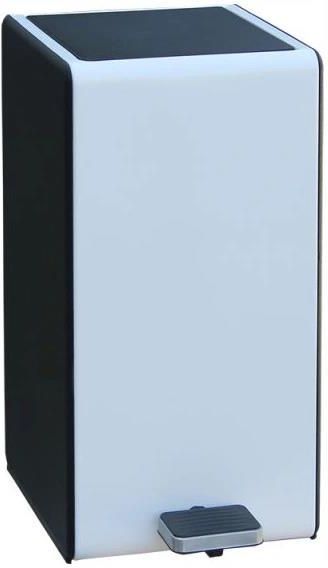 Merida KIB425 Kosz z przyciskiem pedałowym, prostokątny 7 l, metalowy, biał Merida Kosz z przyciskiem pedałowym, prostokątny 7 l, metalowy, biały Elegancki, mały kosz na odpadki. Idealny do biur, pokoi hotelowych i do domu. Starannie wykonany. Swoje walory estetyczne zawdzięcza połączeniu metalowego korpusu (ścianka przednia, tylna oraz pełne, zamknięte dno) malowanego proszkowo z bocznymi ściankami wykonanymi z czarnego tworzywa o delikatnej fakturze skóry. Klapa wykonana jest z tworzywa. Wyposażony w niewidoczny, trwały, mechanizm unoszenia pokrywy z systemem powolnego, cichego opadania. Kosz ma wewnętrzne, wyjmowane wiaderko z pałąkiem, z systemem mocowania worka ukrywającym jego nadmiar - kosz zawsze wygląda schludnie i estetycznie. Spód zabezpieczony przed zarysowaniem podłogi. wysokość (cm): 38|21 (z przyciskiem 26) szerokość (cm): 20 kolor: Biały Kosz z przyciskiem pedałowym, prostokątny 7 l, metalowy, biały
