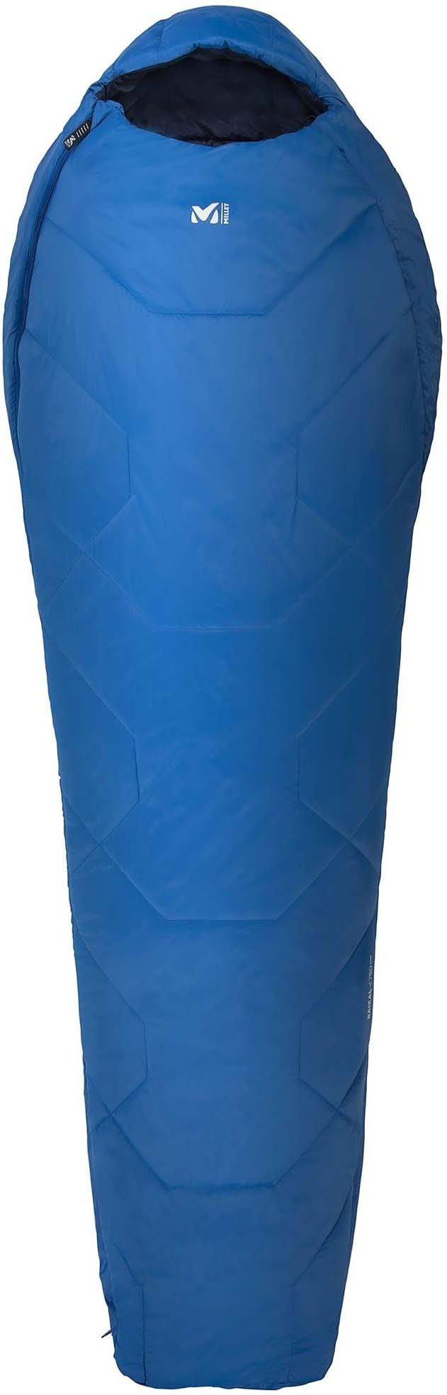 Lekki, dwusezonowy śpiwór syntetyczny marki Millet, w przedłużonej wersji.