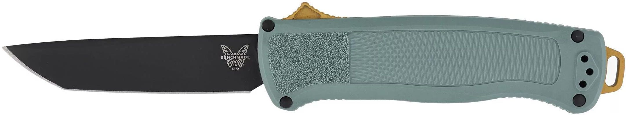 Benchmade Shootout to lekki nóż automatyczny o podwójnym działaniu, w którym zastosowano głownię tanto ze ultra twardej stali CPM-CruWear, rękojeść z tworzywa Grivoy oraz zbijak z węglika wolframu umożliwiający błyskawiczne rozbicie szyby. Rękojeść w kolorze szałwiowej zieleni oraz suwak blokady i …
