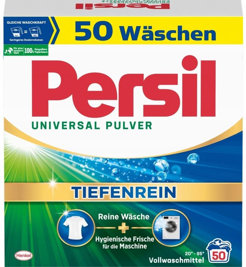 Persil Universal proszek do prania tkanin uniwersalny 50 prań 3kg DE Przedstawiamy proszek do prania uniwersalny Persil– niemiecki środek do prania, który gwarantuje perfekcyjne rezultaty i higieniczną czystość ubrań. Ten produkt jest idealnym wyborem do codziennego prania, zapewniając długotrwałą świeżość i ochronę tkanin. Skuteczność i wydajność - Najważniejsze zalety Skuteczne czyszczenie w niskich temperaturach: Persil Universal proszek skutecznie usuwa plamy już w niskich temperaturach, od 20°C, co pozwala na oszczędność energii i ochronę delikatnych tkanin. Innowacyjna technologia Tiefenrein: Dzięki technologii Tiefenrein, proszek penetruje głęboko włókna tkanin, skutecznie usuwając nawet najtrudniejsze zabrudzenia, nie uszkadzając przy tym tkanin. Długotrwała świeżość: Persil pozostawia ubrania promiennie czyste i świeże na długo po praniu, co sprawia, że odzież wygląda jak nowa przez dłuższy czas. Przyjazny dla środowiska: Opakowanie proszku wykonane jest w 100% z recyklingowych włókien papierowych, co przyczynia się do ochrony środowiska i czystszej planety. Wszechstronność i efektywność Uniwersalne zastosowanie: Proszek Persil Color jest skuteczny w praniu w temperaturach od 20°C do 60°C, co sprawia, że jest idealny zarówno do delikatnych, jak i mocno zabrudzonych ubrań. Silne usuwanie plam: Dodaj odpowiednią ilość proszku do pralki, aby skutecznie usunąć plamy z codziennego noszenia, jednocześnie zachowując kolory i strukturę tkanin. Higieniczna czystość: Regularne używanie proszku Persil universal zapewnia higieniczną czystość ubrań, co jest kluczowe dla zdrowia i komfortu Twojej rodziny. Specyfikacje produktu Pojemność: 3 kg Liczba prań: 50 prań Zakres temperatur prania: 20°C - 60°C Przeznaczenie: Do prania kolorowych i białych tkanin Wybierz proszek do prania Persil i ciesz się nieskazitelnie czystymi, świeżymi i kolorowymi ubraniami po każdym praniu. Zamów już dziś i odkryj siłę niemieckiej chemii w Twoim domu!