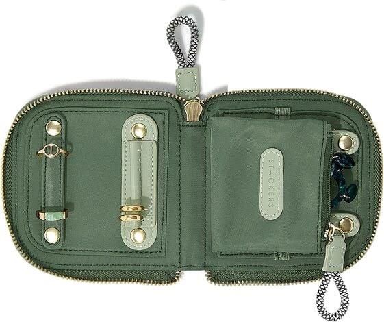 Pudełko podróżne na biżuterię z miejscem na pierścionki Stackers małe zielone nylonowe Nekla