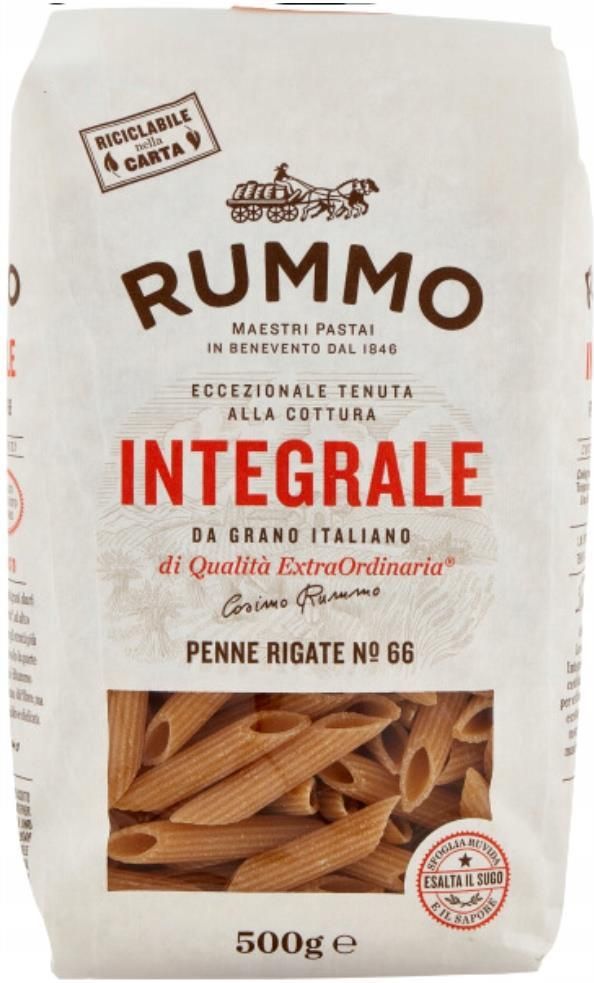 Rummo Integrale Penne Rigate 500g – włoski makaron pełnoziarnisty o wyjątkowym smaku i strukturze Poznaj autentyczny smak włoskiej tradycji w zdrowej, pełnoziarnistej odsłonie. Rummo Integrale Penne Rigate to makaron wykonany w 100% z pełnego ziarna pszenicy durum, bogaty w błonnik i naturalny …