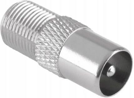 Adapter antenowy RF wtyk TV/IEC - gniazdo F 75Ωnr katalogowy: 62260Opis przedmiotuZłącze F jest najpopularniejszym złączem w technice radiowej stosowanym powszechnie w instalacjach TV/SAT. Złącze F pracuje w paśmie do 3GHz i ma impedancję 75Ω (w większości zastosowań) lub rzadziej 50Ω. Złącze TV/IEC (nazywane również PAL, Belling-Lee lub 9,5) jest popularnym złączem używanym w instalacjach antenowych i urządzeniach R/TV. Złącze TV/IEC pracuje w paśmie do 1GHz i ma impedancję 75Ω.Oferowany adapter jest przejściówką do zamiany typu złącza kabla antenowego. Adapter posiada z jednej strony złącze męskie TV/IEC zaś z drugiej strony złącze żeńskie F. Kabel zakończony złączem F po nakręceniu adaptera pasuje do typowego złącza antenowego TV/IEC 9.5mm spotykanego w odbiornikach TV, tunerach DVB-T, gniazdach sieci kablowej itp.Do przesyłania sygnałów RF (Radio Frequency - wysokie częstotliwości MHz-GHz) stosowanych jest wiele rodzajów złącz koncentrycznych. W urządzeniach i antenach TV, SAT, FM, DAB, DVB, GSM, GPS, WiFi itp. występują złącza przeznaczone do pracy w zakresach częstotliwości od kilkudziesięciu MHz do kilkudziesięciu GHz. Najczęściej stosowane obecnie złącza prezentuje tabela poniżej - prezentujemy w niej wygląd wtyków i gniazd danego typu, maksymalną częstotliwość pracy oraz przybliżone średnice złącz.Oferowany adapter wykonany jest z niklowanego stopu miedzi. Impedancja adaptera wynosi 75Ω.Dane techniczne Złącza: wtyk TV/IEC męski, gniazdo F żeńskie Impedancja: 75Ω Pasmo pracy: CAM/R/TV (do 1GHz) Materiał: niklowany stop miedzi Wymiary (długość/średnica w najszerszym miejscu): 27/10mm Masa: ok. 5g