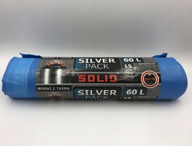 SOLID Worki z taśmą SILVER PACK 60L 15 sztuk EAN: 5906554513476 Worki SOLID SILVER PACK 60 L to praktyczne rozwiązanie do codziennego zbierania i wynoszenia odpadów. Wykonane z wytrzymałej folii LDPE, charakteryzują się dobrą odpornością na rozdarcia i uszkodzenia, co zwiększa komfort użytkowania …