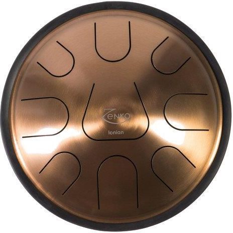 Tongue Zenko ZEN01 IonianWykonany ze stali nierdzewnej instrument typu steel tongue drum wspaniale łączący perkusyjną grę rytmiczną z głęboko relaksującymi dźwiękami o różnej wysokości w z góry określonym stroju. Instrumenty z tej serii są projektowane i wytwarzane we Francji przez firmę Metal Sounds. Wysoka jakość materiałów i precyzja wykonania sprawia, że ich dźwięk jest przyjemny, bogato nasycony harmonicznymi, a strój pozostajestabilny przez długie lata użytkowania. Charakter dźwięku zmienia się wzależności od tego, czy będziemy grać rękami, czy za pomocą dołączonych pałeczek.Instrumenty Zenko doskonale sprawdzają się wielu gatunkach muzyki, stosowane są również podczas zajęć terapeutycznych i relaksacyjnych. Są jednocześnie „proste w obsłudze”, a sama gra na nich jest niezwykle odprężająca i satysfakcjonująca. Świetnie nadają się zarówno dla początkujących, jak i zaawansowanych muzyków. Dostępne są w wielu wariantach, różniących się strojem. Instrumenty Zenko znakomicie sprawdzają się w muzyce etnicznej, New Age, ale także w zajęciach dźwiękowych, terapeutycznych i medytacyjnych.Model Ionian ZEN01 doskonale uzupełnia się brzmieniowo z modelem Combo.W komplecie znajduje się wysokiej jakości pokrowiec transportowy, podkładka oraz pałki.Specyfikacja • Materiał: stal nierdzewna • Strój: A3, C4, D, E, F, G, A, B, C5 ( 9 dźwięków, 440Hz ) • Średnica: 12,6’’ (32 cm) • Wysokość: 5,12’’ (13 cm) • Waga: 2,8 kg • W komplecie: pokrowiec transportowy,podkładka oraz pałki* Nazwy dźwięków zostały naniesione na zdjęcie instrumentu jedynie w celach informacyjnych – w rzeczywistości nie są nadrukowane !