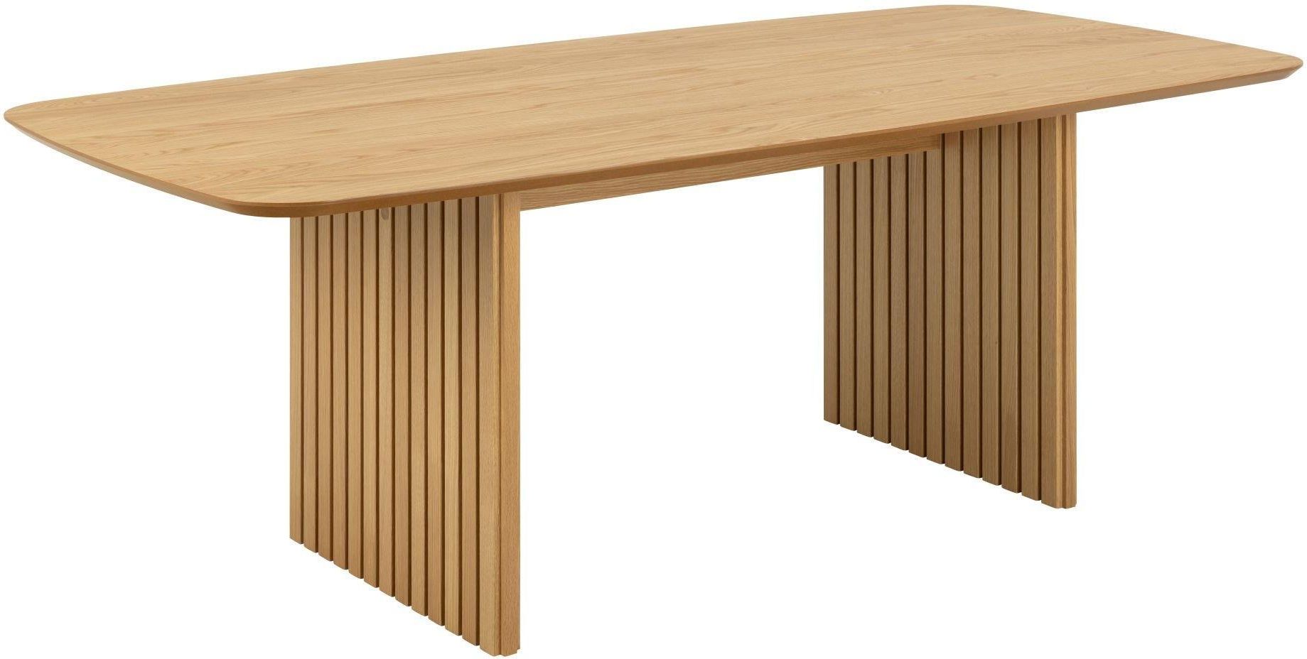 STÓŁ CHRISTO 220x105 CM DĄB Prostokątny stół do jadalni wykonany z olejowanej płyty fornirowanej w kolorze dębu sprawdzi się w nowoczesnych salonach oraz przestrzeniach kuchennych. Stół wyposażony został w ozdobne listwy stożkowe z wykończeniem matowym. Produkt idealnie sprawdzi się dla sześciu osób. Stół o lekkiej, skandynawskiej formie będzie stanowił piękny dodatek dekoracyjny we wnętrzach w stylu boho czy też japandi. Actona Company to znana w Europie duńska firma zajmująca się dystrybucją starannie wyselekcjonowanych designerskich mebli wysokiej jakości. Firma działa na rynku ponad 30 lat, obecnie jej produkty sprzedawane są w ponad 90 krajach na całym świecie. Ważnym elementem działalności firmy Actona Company jest współpraca z architektami, co gwarantuje nowoczesny design oferowanych produktów i zgodność wzornictwa z najnowszymi światowymi trendami.