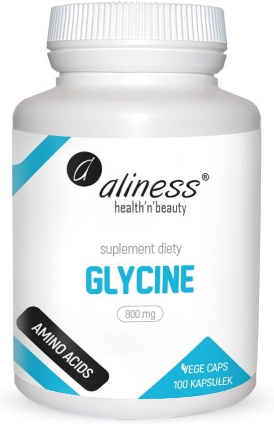 Aliness Glycine (glicyna) 800mg 100 kapsułek Aliness Glycine (glicyna) 800mg 100 kapsułek najważniejsze właściwości zawiera glicynę w postaci wygodnej kapsułki bez glutenu, bez laktozy produkt wegański Suplement diety Aliness Glycine (glicyna) 800 mg 100 kapsułek to produkt zawierający aminokwas białkowy glicynę w postaci wygodnych, wegańskich kapsułek.. Glicyna to jeden z 20 aminokwasów, które są podstawowymi składnikami białek w organizmach żywych. Jest kluczowym składnikiem dla wielu procesów biologicznych, od strukturalnych po metaboliczne, co sprawia, że jest niezwykle istotna dla zdrowia organizmu. Podsumowując, Aliness Glycine (glicyna) 800 mg 100 kapsułek to suplement diety o czystym i prostym składzie. Jest to idealny produkt dla wegetarian i wegan, a jego forma kapsułki umożliwia wygodne stosowanie. Składniki Składnik - W 1 kapsułce (%RWS) (W 3 kapsułkach (%RWS)) Glicyna - 800 mg (-) (2400 mg (-)) Glicyna, otoczka kapsułki: (substancja wiążąca: hydroksypropylometyloceluloza). Sposób użycia Zalecana porcja do spożycia w ciągu dnia niezbędna do uzyskania korzystnego działania:1 kapsułka, trzy razy dziennie w trakcie posiłku (opakowanie zawiera 33 porcji). Przeciwwskazania Produkt nie może być stosowany jako substytut zróżnicowanej diety. Zrównoważony sposób żywienia oraz zdrowy tryb życia są podstawą prawidłowego funkcjonowania organizmu. Nie należy przekraczać zalecanej porcji do spożycia w ciągu dnia. W przypadku stosowania leków lub innych suplementów diety należy skonsultować z lekarzem. Przechowywanie Przechowywać w temperaturze pokojowej. Chronić przed wilgocią. Przechowywać w sposób niedostępny dla małych dzieci. Podmiot odpowiedzialny: MEDICALINE Konrad Malitka, Ostrówiec 150, 05-480 Karczew, NIP: 5321690962, REGON: 142830480 SKU: 5903242582264