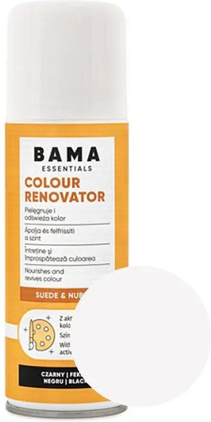 Bezbarwny renowator, pasta do zamszu, nubuku, Colour Renovator Essentials Bama, 200 ml to bezbarwna pasta w sprayu do zamszu, nubuku, skóry welurowej. Pata do butów S19 zawiera formułę, która zmiękcza oraz odświeża kolor obuwia oraz akcesoriów z zamszu i nubuku. Usunąć kurz szczotką. Dobrze wstrząsnąć pojemnikiem rozpylić z odległości ok. 20 cm. Pojemnik trzymać w pozycji pionowej. Stosować wyłącznie w dobrze wentylowanych pomieszczeniach.