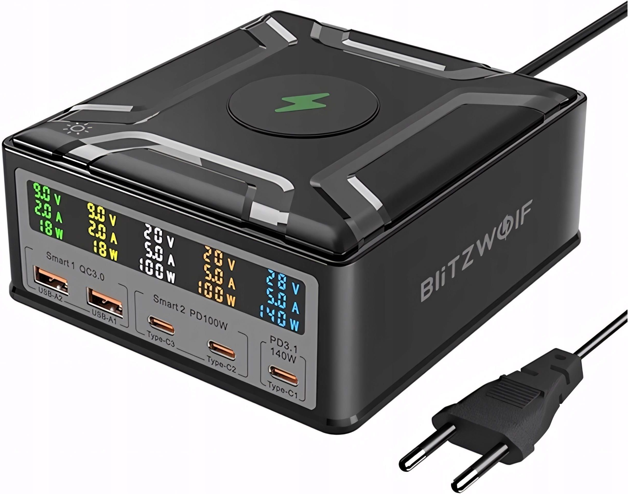 Blitzwolf BW-S28 Ładowarka Sieciowa i Bezprzewodowa Qi PD3.1 QC4+ 6w1 260W Nidzica