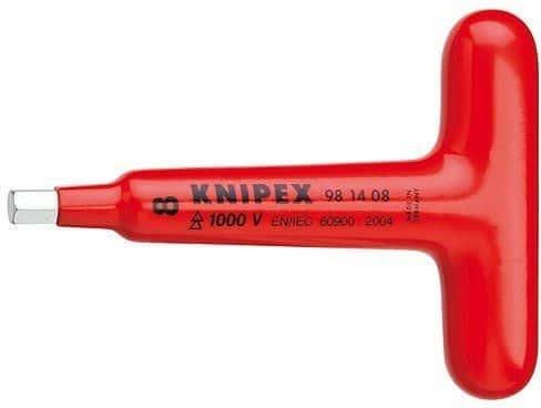 Wkrętak (śrubokręt) izolowany sześciokątny (imbusowy) z rękojeścią "T" Knipex 98 14/15 Profesjonalny wkrętak (śrubokręt) trzpieniowy izolowany typu "T" firmy Knipex do śrub i wkrętów z gniazdem sześciokątnym (tzw. imbus, ampul) stosowanych np. w urządzeniach, maszynach, urządzeniach elektrycznych, obudowach itp. Wkrętak izolowany typu "T" to alternatywa dla tradycyjnych wkrętaków izolowanych, pozwalają na przenoszenie większej siły. Wkrętak izolowany 1000V jest przydatny do wszelkiego rodzaju przemysłowych i warsztatowych prac montażowych oraz serwisowych. Narzędzie bazowe zostało wykonane ze stali narzędziowej, czernione, natomiast izolacja zanurzeniowa z tworzywa PCW . Wkrętak izolowany do 1000 V zgodnie z PN-EN 60900. TWOJE KORZYŚCI: możliwe przeniesienie dużej siły - rękojeść typu "T" ogólne zastosowanie - do wszelkiego rodzaju przemysłowych i warsztatowych prac montażowych oraz serwisowych w urządzeniach, maszynach, urządzeniach elektrycznych, obudowach itp. izolacja zanurzeniowa z tworzywa PCW