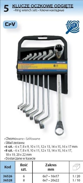 PROLINE KLUCzE OCzKOWE ODGIęTE ILOść 6 6x7-16x17mm CrV 36526 Nidzica