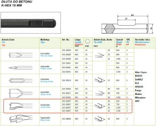 Dłuto do betonu k-hex 400x19mm bruzdownik 26mm