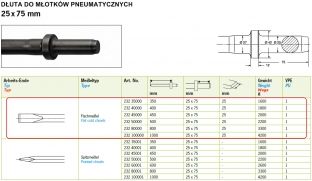 Dłuto płaskie do młotków pneumatycznych 500mm 25mm 25x75mm