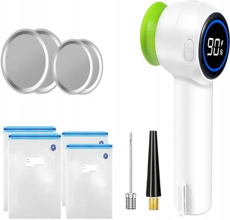 To kompaktowe, elektryczne urządzenie do pakowania próżniowego doskonale sprawdzi się w każdej kuchni i domowym gospodarstwie. Umożliwia szybkie i skuteczne usuwanie powietrza z woreczków wielorazowych, słoików, pojemników próżniowych, a także pompowanie piłek i balonów. Dzięki elektronicznemu wyświetlaczowi LED masz pełną kontrolę nad stanem pracy oraz poziomem próżni. Wbudowany akumulator 1200 mAh zapewnia pełną mobilność – nie musisz podłączać urządzenia do gniazdka! WSZECHSTRONNE ZASTOSOWANIE – AŻ 4 FUNKCJE W JEDNYM URZĄDZENIU Zgrzewarka do worków wielorazowych – przystosowana do współpracy z woreczkami wyposażonymi w okrągły zawór. W zestawie otrzymujesz 4 woreczki próżniowe: 2 większe i 2 mniejsze. Zamykanie słoików – dzięki 4 dołączonym pokrywkom w dwóch rozmiarach (8,5 cm i 6,7 cm), urządzenie umożliwia próżniowe zamykanie popularnych słoików, dzięki czemu żywność zachowuje świeżość na dłużej. Odciąganie powietrza z pojemników próżniowych – urządzenie jest kompatybilne z większością pojemników dostępnych na rynku z zaworem próżniowym. Pompowanie piłek i balonów – do zestawu dołączono igłę oraz adapter, które umożliwiają pompowanie piłek do koszykówki, siatkówki, a nawet dziecięcych baloników. ŚWIEŻOŚĆ NA DŁUŻEJ – BEZ KONSERWANTÓW I MARNOWANIA ŻYWNOŚCI Pakowanie próżniowe to skuteczna metoda przedłużania świeżości produktów spożywczych – bez potrzeby użycia chemicznych dodatków. Dzięki usunięciu powietrza, bakterie i pleśń mają utrudniony rozwój, co sprawia, że mięso, sery, owoce, warzywa czy produkty sypkie zachowują swoje walory smakowe nawet kilka razy dłużej. To idealne rozwiązanie nie tylko dla kuchni domowej, ale także na biwak, do przechowywania żywności w lodówce, zamrażarce czy spiżarni. OSZCZĘDNOŚĆ MIEJSCA, CZASU I PIENIĘDZY Dzięki kompaktowej formie i wielofunkcyjności urządzenia zyskujesz większy porządek w kuchni i redukujesz ilość odpadów. Zamiast kupować jednorazowe worki czy przeterminowaną żywność, możesz pakować próżniowo większe porcje, dzielić produkty na porcje lub przechowywać resztki obiadowe na później. To doskonały sposób na ograniczenie marnotrawstwa i lepsze planowanie zakupów – a wszystko przy zachowaniu pełnej wygody i mobilności dzięki akumulatorowemu zasilaniu i nowoczesnemu designowi. ZALETY PAKOWANIA PRÓŻNIOWEGO Świeże produkty przez dłuższy czas Większy porządek w lodówce Lepszy smak mięs Oszczędność pieniędzy Wygoda Tak zapakowane jedzenie można zabrać w podróż Pożywienie nie będzie zanieczyszczone przez bakterie SPECYFIKACJA TECHNICZNA Materiał wykonania: tworzywo sztuczne Dłuższa trwałość jedzenia Blokuje przenikanie zapachów Zasilanie: wbudowany akumulator Ładowanie za pomocą kabla USB (w zestawie) Moc: 5W Uszczelka Kolor: biały WYMIARY Wysokość: 16cm Długość: 8,5cm Średnica otworu z uszczelką: 4cm Wymiary worków: 33,5cm x 30cm 27,5cm x 25,5cm Wymiary pokrywek 8,5cm 6,7cm ZESTAW ZAWIERA Fabrycznie nową pompką próżniową do torebek próżniowych Kabel zasilający USB 4 x torebki próżniowe 4 x pokrywki próżniowe Otwieracz do słoików Igła do pompowania Adapter do pompowania Oryginalne opakowanie